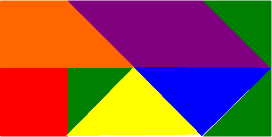 Aquí presentamos un nuevo modelo de Tangram… su forma original es un rectángulo de 14 cm de largo por 7 cm de ancho (o cualquier otra medida que respete esa proporción). |